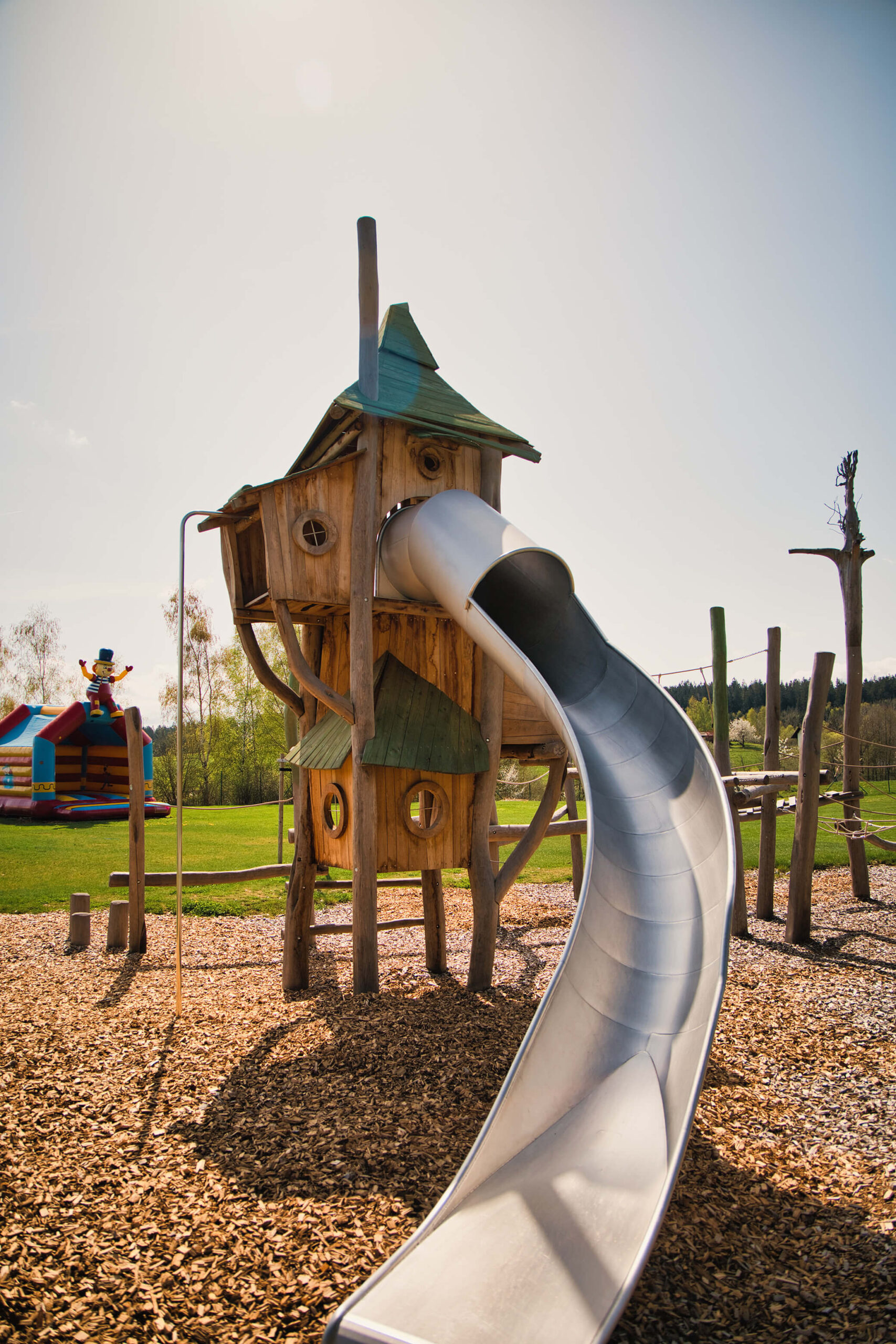 Klettern auf dem Spinnennetz, balancieren auf einem Baumstamm, rutschen durch die Spiralrutsche, auf der Hüpfburg springen und mit der Seilbahn fahren – da kommt keine Langweile auf.